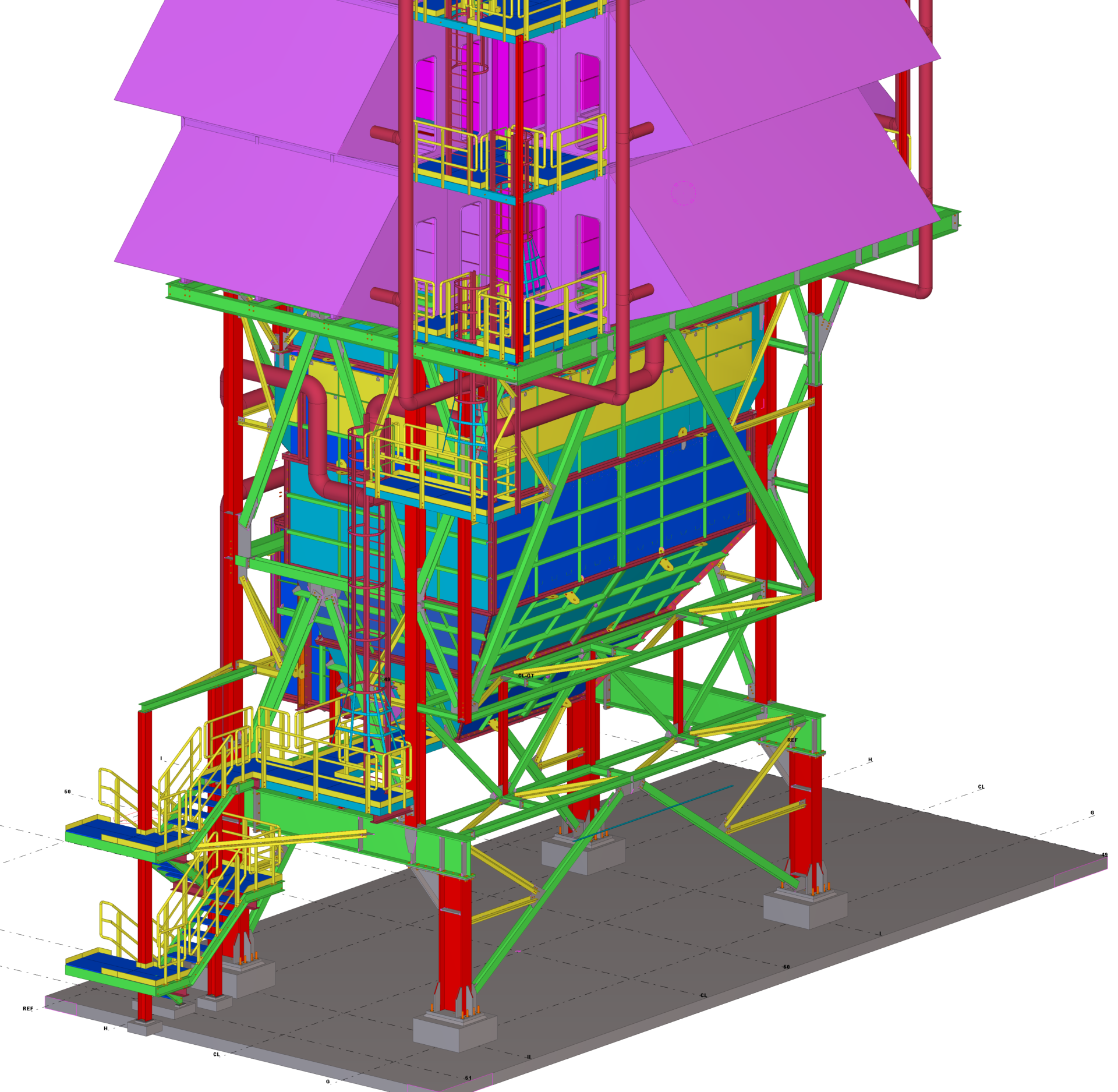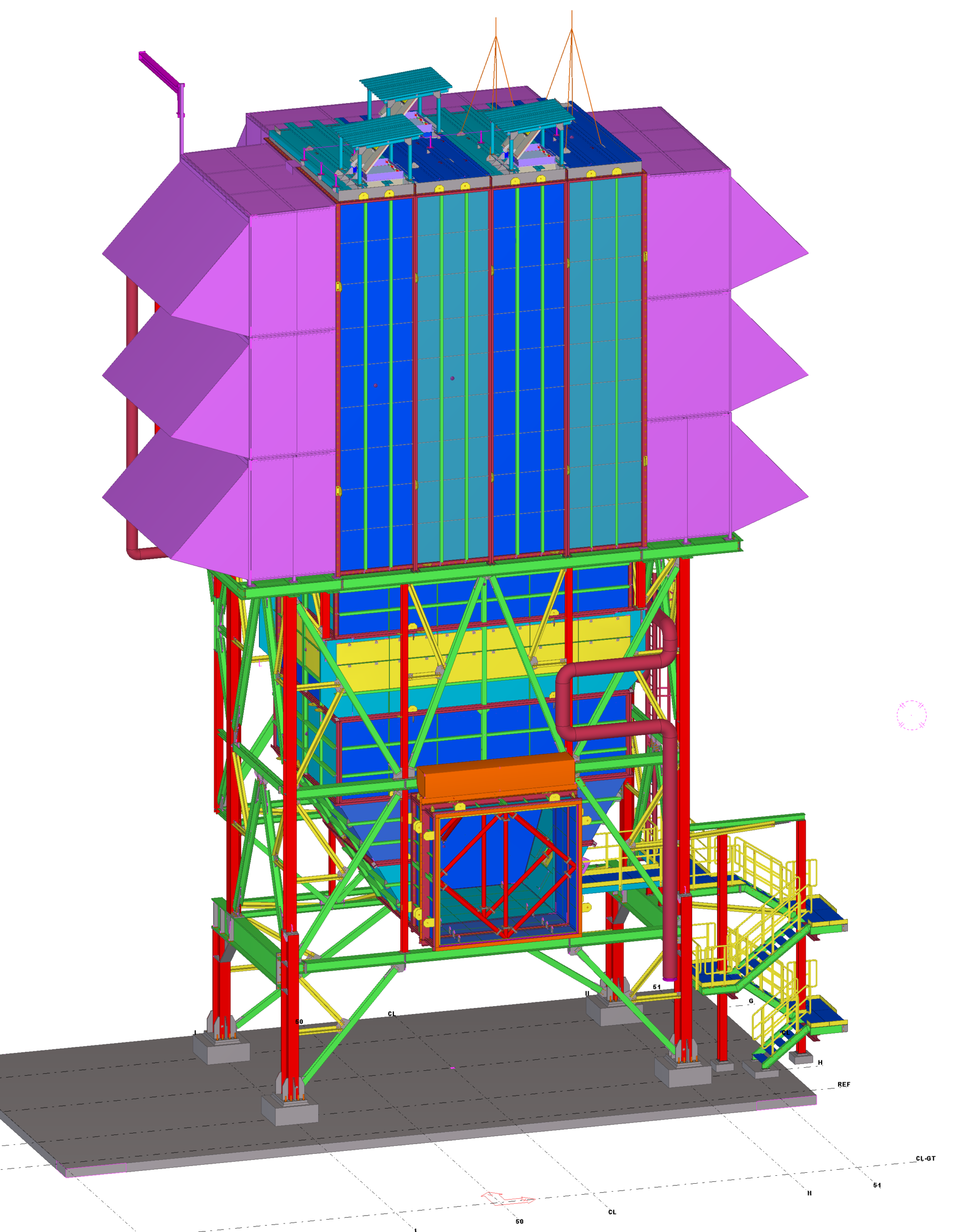 Name Teststand Berlin Zeitspanne 2013-2015 Abmessungen LxBxH = 15m x 15m x 27m Kunde G+H Montage Tonnage 210 t Besonderheiten Das Besondere an diesem Modell ist, dass
